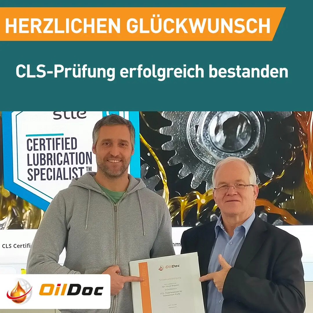Nach unserem letzten CLS-Vorbereitungskurs vom 01.12. bis 04.12.2025 hat Thomas Bergmann, Senior Lubrication Field Engineer bei ExxonMobil erfolgreich die Online-Prüfung zum CLS (Certified Lubrication Specialist) Schmierstoff-Spezialist abgelegt.